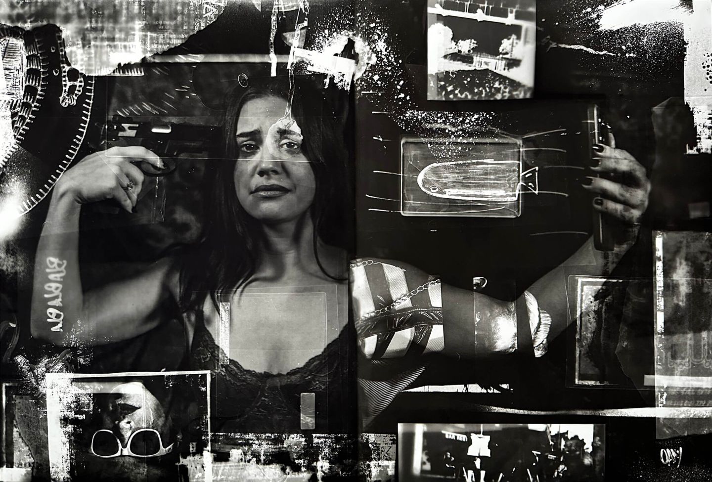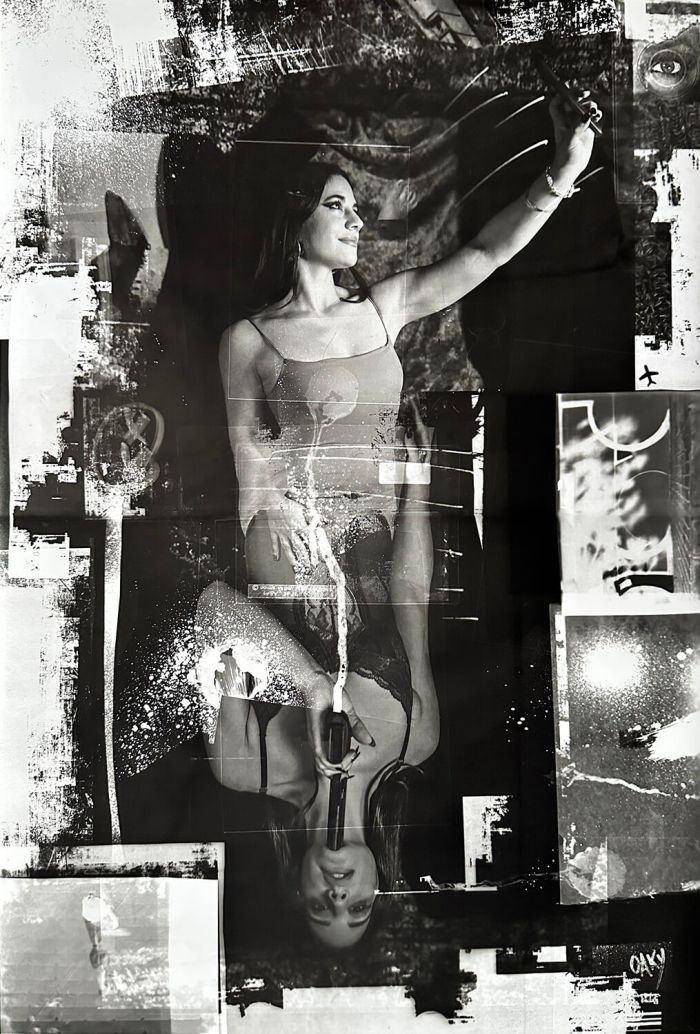 In this project, Damián Pissarra (Oaky) fuses multiple photographic techniques —35mm analog photography, pinhole processes, physical textures, illustrations on acetate, and digital manipulation— to create a hybrid visual language. Each work is born in the darkroom, where chemical and digital elements merge in an unrepeatable process: altered negatives, layered materials, and manual fusions that make it impossible for two pieces to ever be the same.